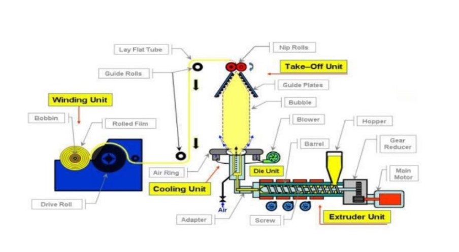 At this point, the material does not fully solidify. Subsequently, it undergoes an additional expansion process through blowing. This method is primarily suitable for producing thinner plastic films. For thicker sheets, alternative extrusion processes are required.