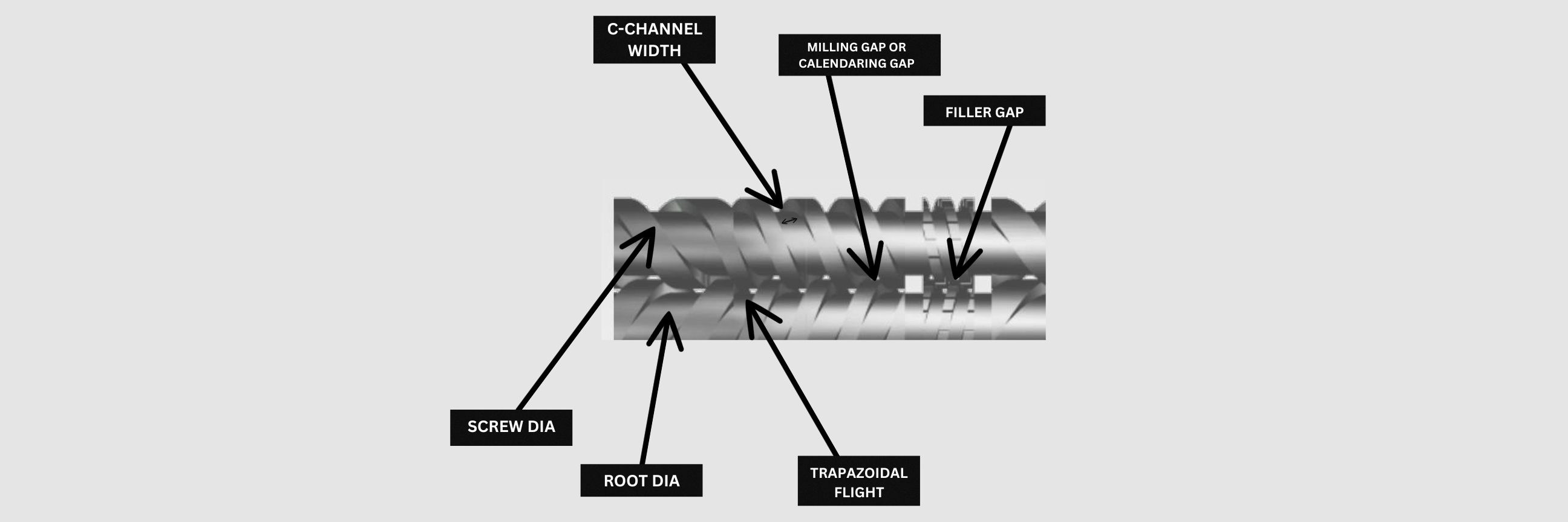 In the realm of counter rotating twin screws, the size of a parallel extruder is determined by the screws' diameter, whereas conical screws' size is defined by the screw's diameter at the end of the metering section. This specific diameter at the bottom of the channel is known as the "Root diameter." Understanding these gaps is essential for comprehending the nuances of PVC processing.
