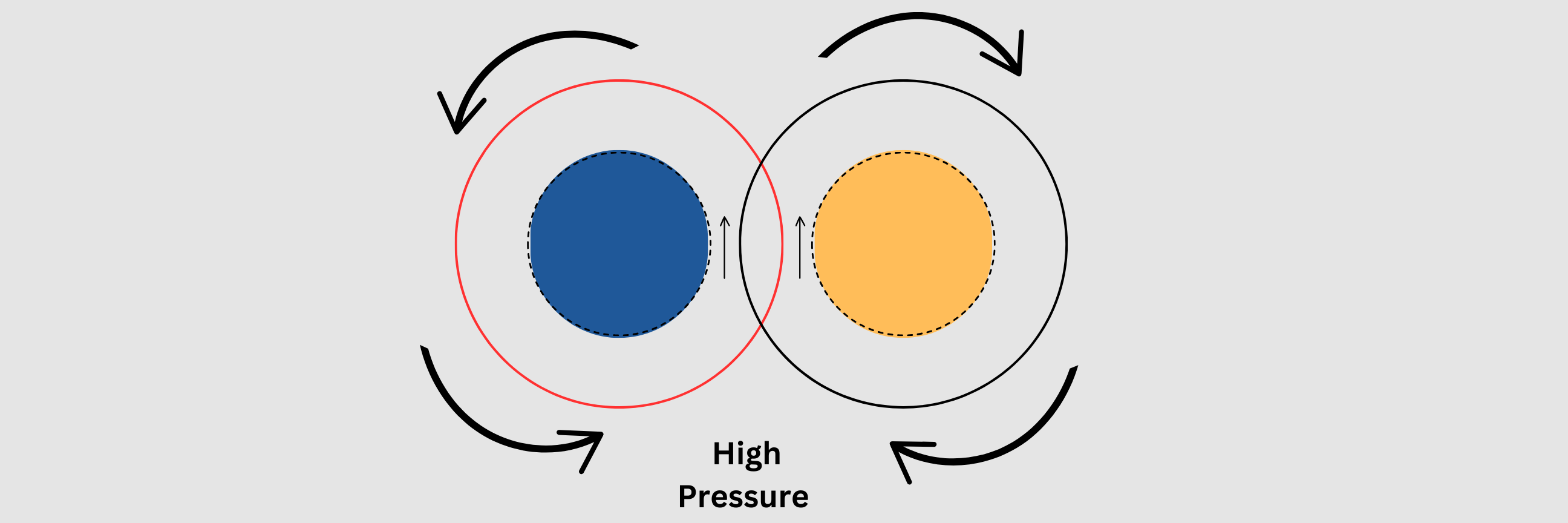 In counter-rotating screws, two possible rotation directions are observed from a top-down view: